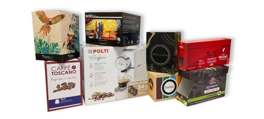 Mais ce n'est pas tout: les boîtes d'emballage de café imprimées numériquement sont également idéales pour choisir des graphismes différents pour tous les modèles de machines à café ou pour les différentes dosettes et capsules de l'assortiment.