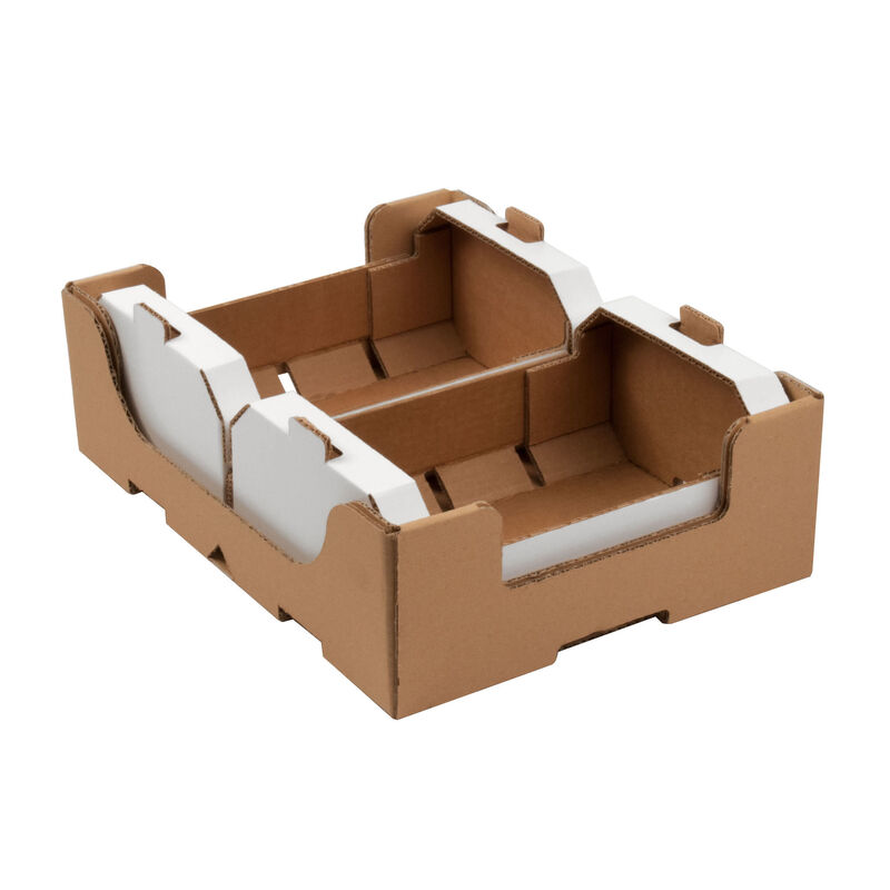 Plateau en carton ondulé autoportant avec fentes pour la circulation de l'air.