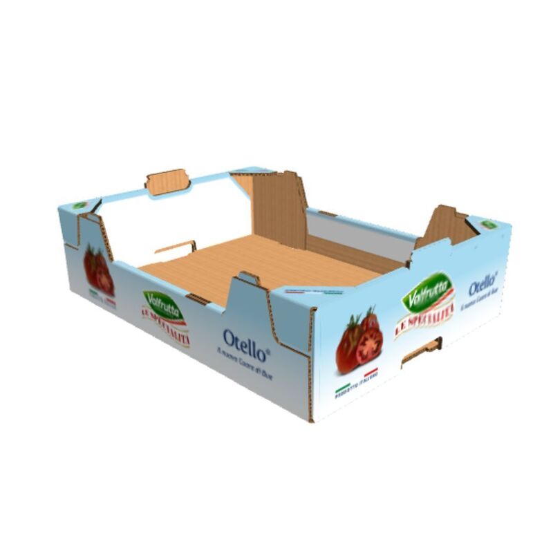 Plateaux en carton ondulé pour fruits et légumes de forme classique avec renforts.