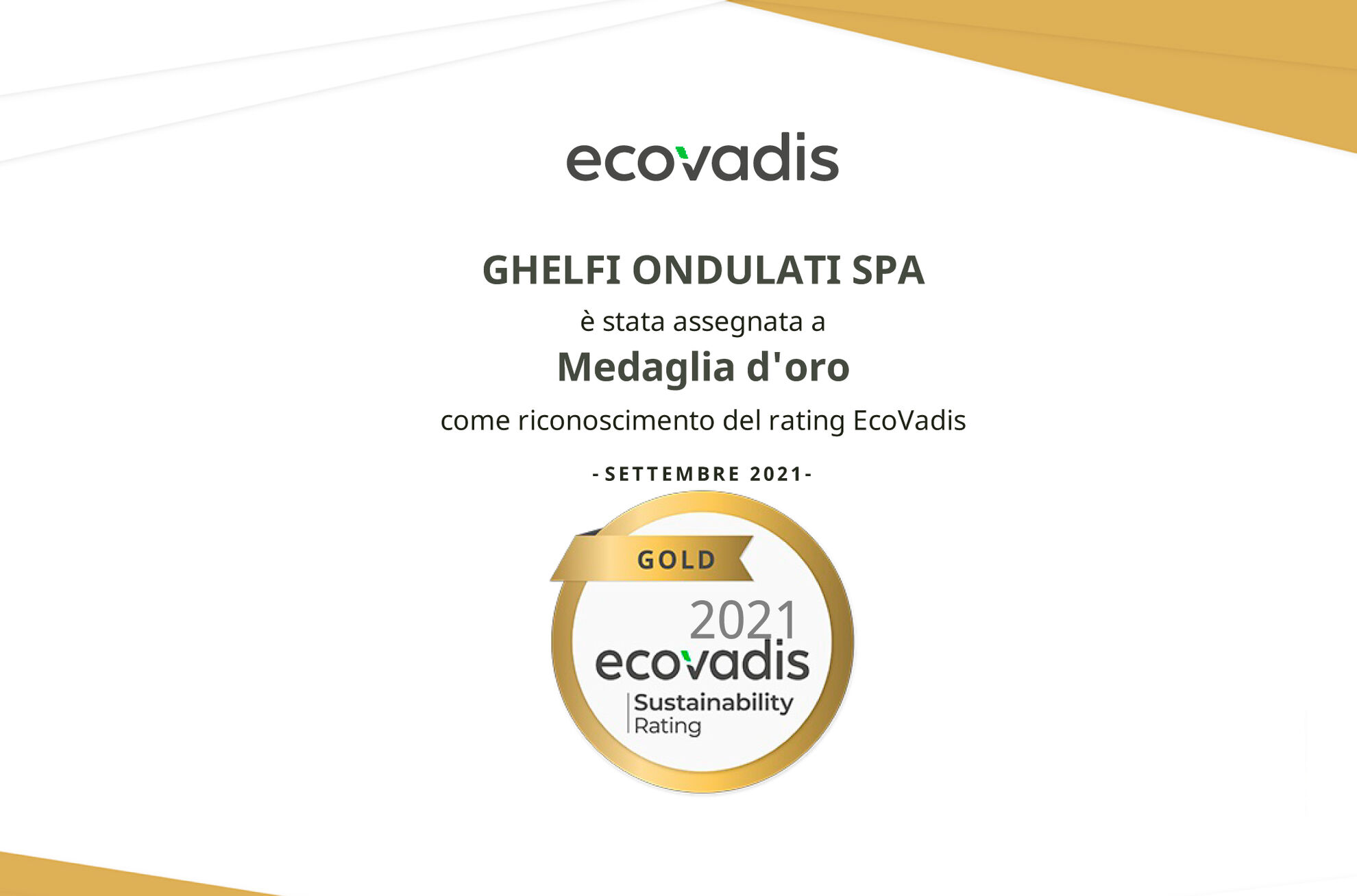 EcoVadis ha assegnato a Ghelfi Ondulati la "Medaglia Oro" (Gold Recognition Level) facendo così rientrare la nostra azienda fra il "Top 5 % performers".
