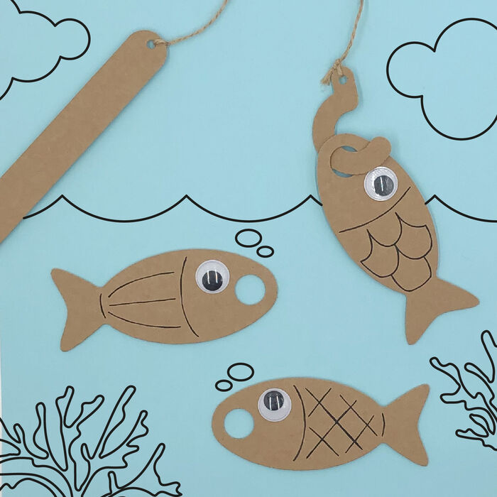 Quanti pesci abboccheranno all’amo oggi??? MATERIALE: scatola in cartone, sagome, taglierino/forbici, colla, filo/spago, matita, scatola, pennarelli facoltativi (per decorare). -...