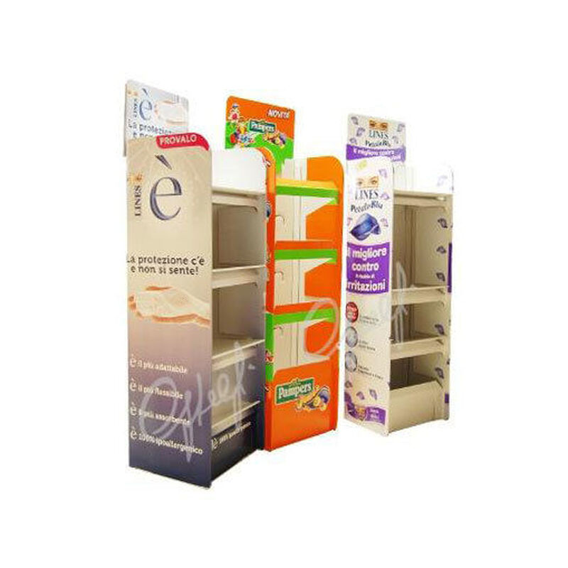 Espositori da terra in cartone ondulato progettati per la presentazione dei prodotti.