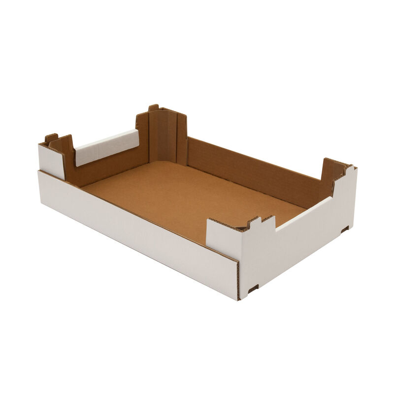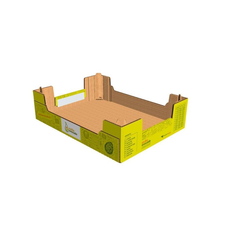 An open crate without a lid, it avails of ESA technology. In addition to having high mechanical performance conferred by the corner protector, the new ESA packaging favours automatic filling by being completely “open”, increasing capacity whilst allowing a substantial reduction in the height of the packaging to facilitate a palletisation of the package above international standards.